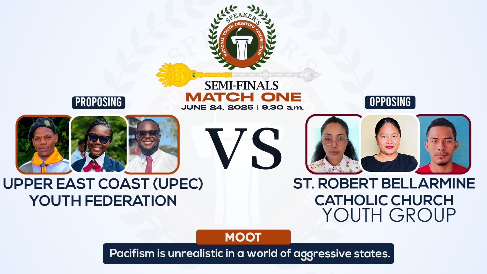 Georgetown, Guyana – The Upper East Coast Youth Federation (UPEC) has secured the first coveted spot in the Final of the 2025 Speaker’s National Youth Debating Competition, following a commanding victory over the St. Robert Bellarmine Catholic Church Youth Group.